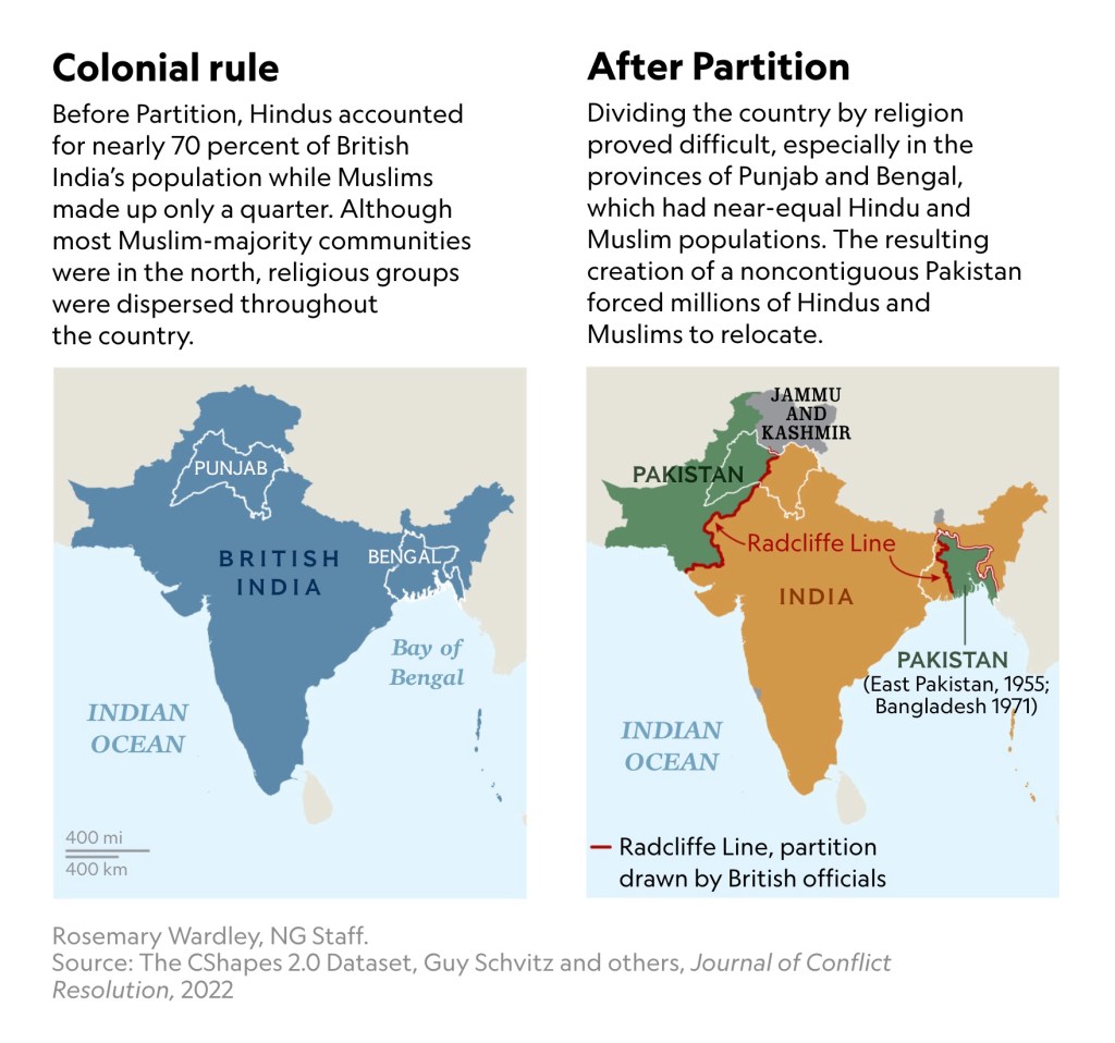 Incidentally, that happened to be on two sides of the Indian Republic today. So after the British left the region, the world ended up with Muslim majority Pakistan containing two wings (East & West) with Hindu majority India in the middle. And that turned out to be an untenable situation, particularly for the East Pakistanis (now Bangladeshis) for reasons that would warrant an entire encyclopedia. So if not for partition, there would be no Bangladesh today.